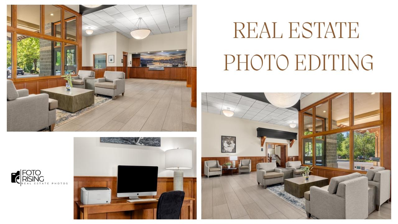 Real estate editing often relies on HDR blending to balance bright windows and darker interiors. Additionally, editors brighten rooms to enhance spaciousness and clarity.